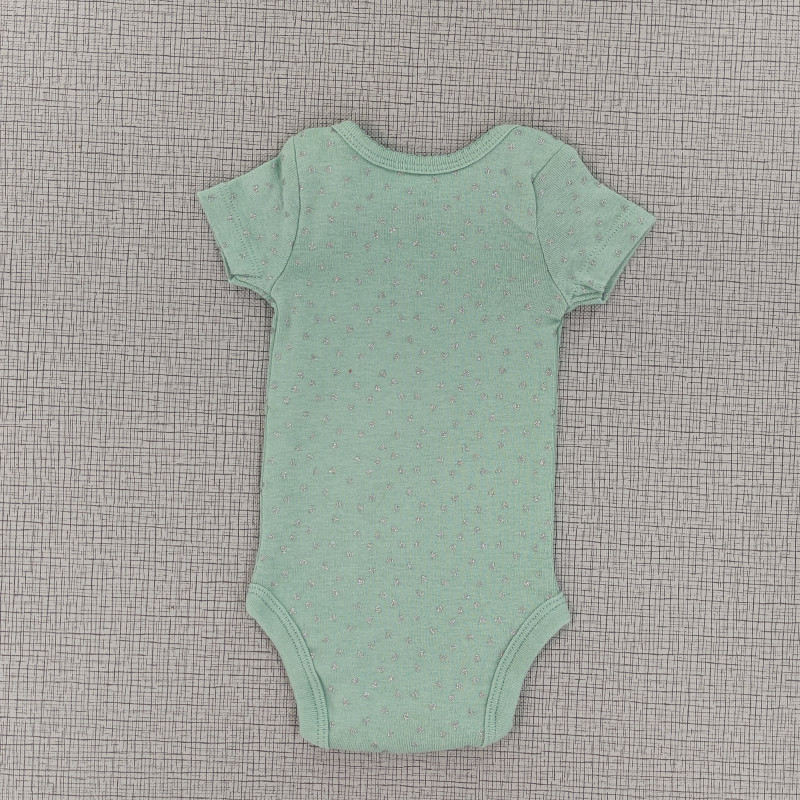 Body color menta en excelentes condiciones, estampado de corazones escarchados grises, manga corta y en excelentes condiciones.