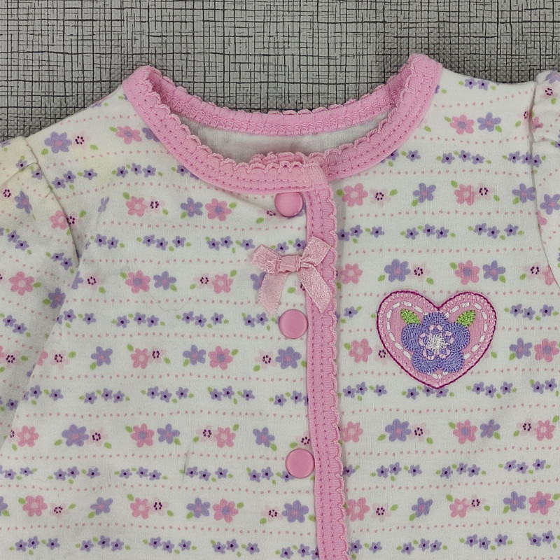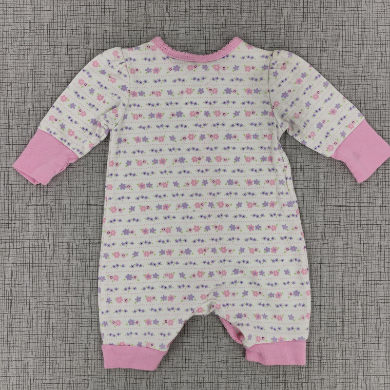 Pijama enteriza blanca filo rosado con estampado de flores